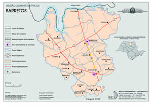 Mapas individuais das regiões administrativas e metropolitanas do Estado com as divisas municipais, principais cursos d'água, rodovias e aeroportos.