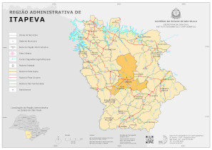 Mapas individuais das regiões administrativas e metropolitanas do Estado com as divisas municipais, principais cursos d'água, rodovias e aeroportos.